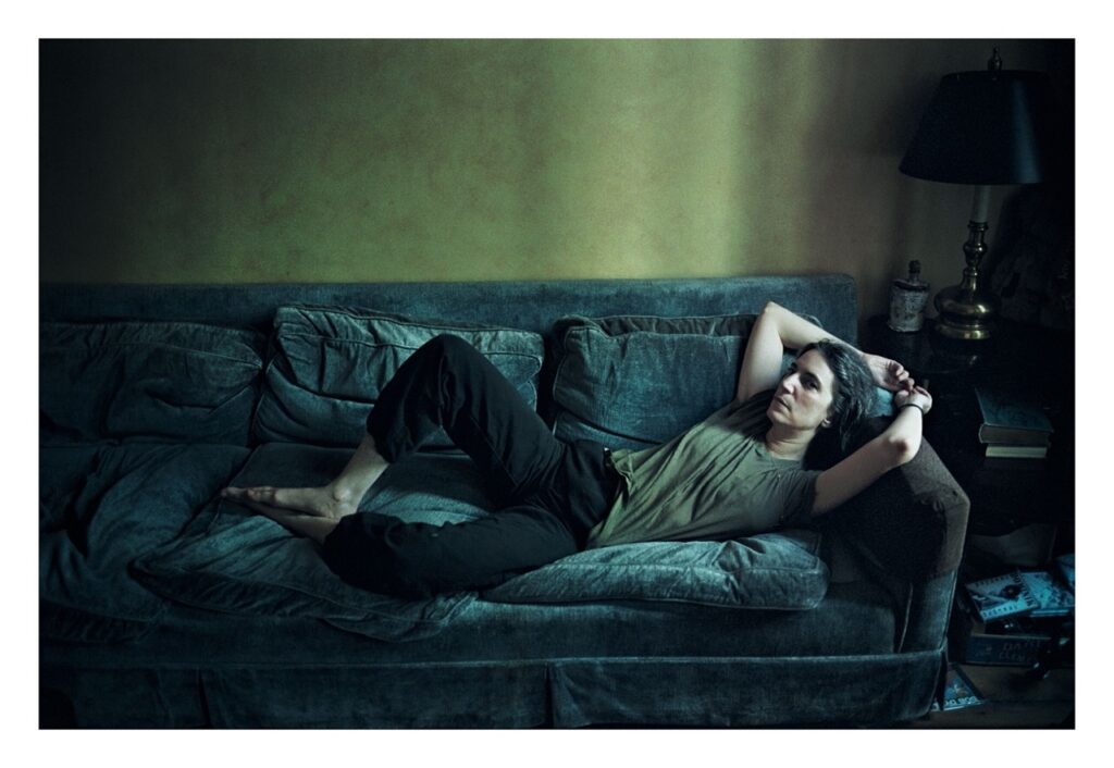 Si les amateurs de la chanteuse punk rock la connaissent bien, flamboyante sous l’objectif d’Annie Leibovitz en 1978 en couverture du magazine Rolling Stone, c’est en revanche une part plus intime que Patti Smith donne à voir avec cette photo, saisie dans son appartement de MacDougal Street. Dans la veine du portrait en noir et blanc pris en 1996 à New York, l’Américaine se dévoile dans sa simplicité quotidienne, le regard de côté, dans une position décontractée sur son canapé.