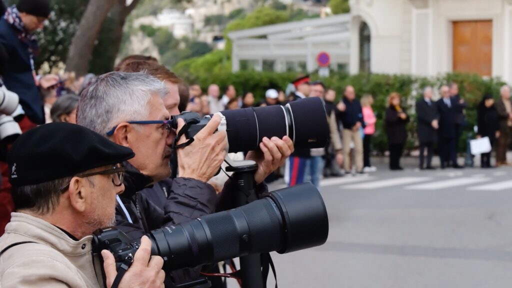 Tout au long de cette journée spéciale, les photographes sont sur le qui-vive. Lors de certains grands événements internationaux, comme le Festival de Cannes, ils se retrouvent parfois obligés de jouer les coudées franches pour capter le moindre moment marquant. Ce n’est pas le cas sur la place du Palais, comme nous le confie ce photographe, dont c’était la première couverture de l’événement. « C’est une petite équipe, comme une famille. Tout le monde se connaît. On est détendus. Il n’y a pas de stress et c’est ça le plus important. Il y a de la place pour tout le monde donc c’est agréable de travailler dans ces conditions. »
