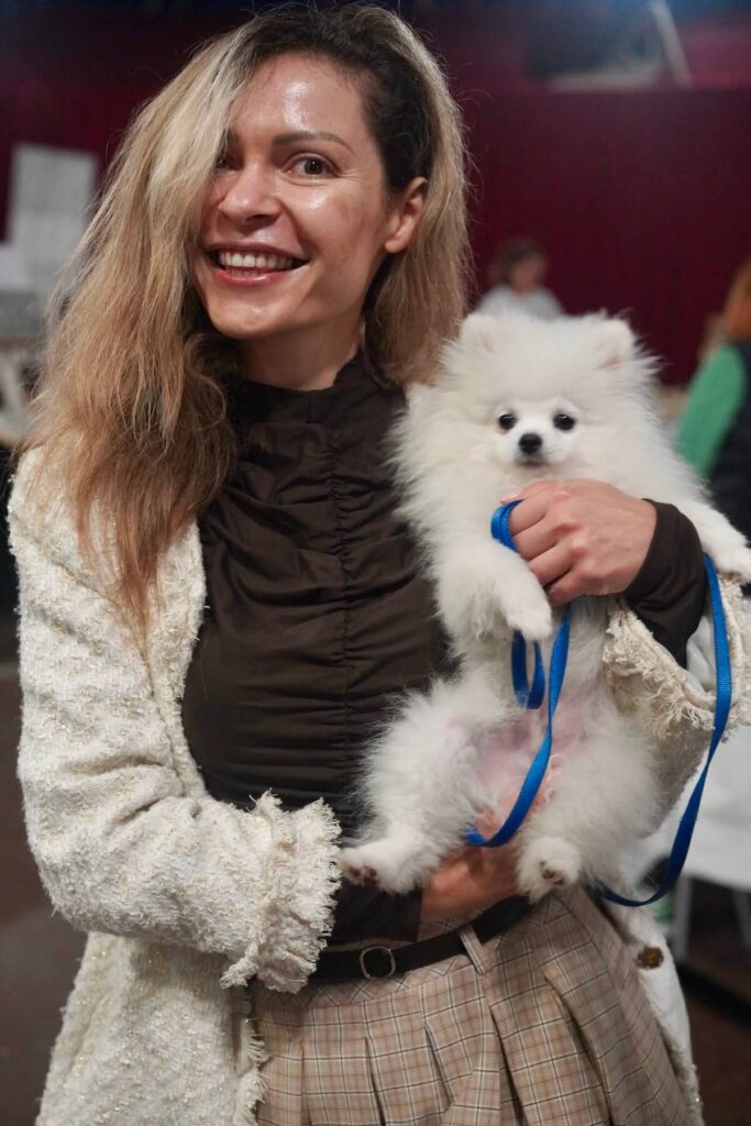 Si un chien pouvait être aristocrate, ce serait Jady. « Elle est très solitaire, vraiment tranquille. Elle aime bien rester au centre, au milieu de la compagnie, mais elle ne saute jamais sur les gens. Elle se pose par terre et elle est plutôt comme une décoration », décrit Maria. Une présence discrète mais noble, « comme une petite princesse très élégante ». Transportée depuis Moscou par Maria, Jady était un chiot avec des problèmes de santé qui cherchait une famille d’accueil. Aujourd’hui trilingue (russe, français, italien), elle accompagne sa maîtresse partout : centres commerciaux, bars, restaurants. « Est-ce que son caractère vous ressemble ? » « VRAIMENT beaucoup », répond Maria sans hésitation. L’élégance tranquille, la gentillesse réservée, la distinction : tout y est.