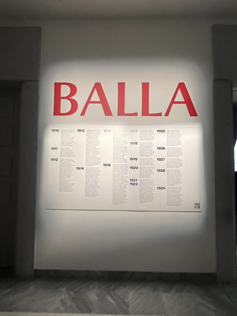 Réunissant près de 60 œuvres majeures, cette exposition met en lumière les différentes périodes de la carrière de Balla, de ses débuts figuratifs à ses expérimentations futuristes. Parmi les tableaux emblématiques présentés figurent La Pazza (1905), Forze nuove (1919) ou La fila per l’agnello (1942) qui illustrent sa recherche constante sur le mouvement, la lumière et l’énergie dynamique du monde moderne.