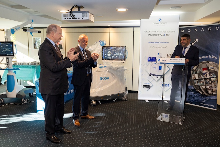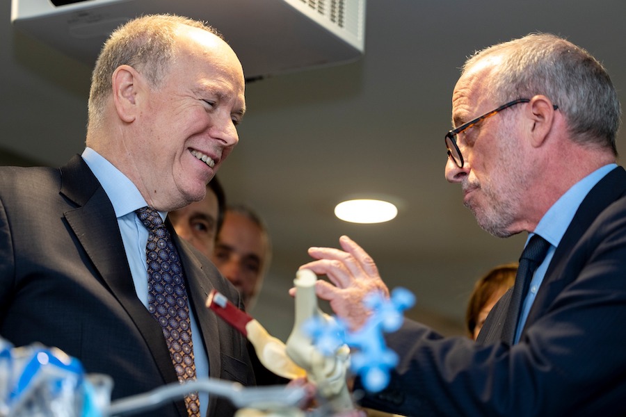 Le Souverain a visité l’institut monégasque de médecine et de chirurgie sportive équipé de ce système d’assistance robotique déjà éprouvé dans plusieurs établissements français.