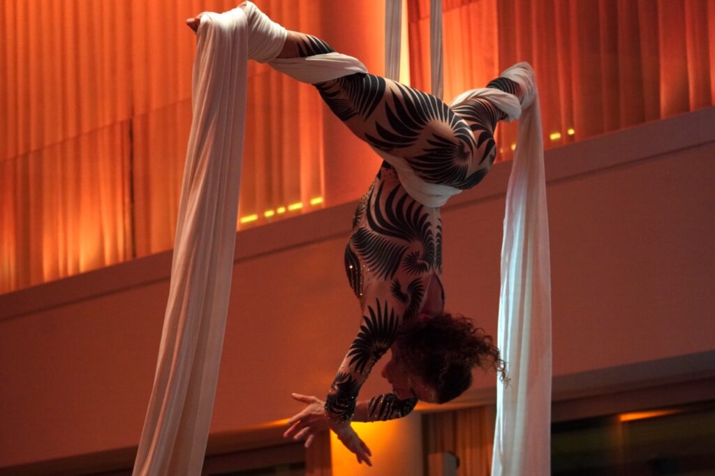 Attablés dans l’immense salle du Yacht Club, les convives ont vu leur repas ponctué d’une performance de danse aérienne sur tissu avant que Berit Legrand elle-même ne saisisse le micro pour dire quelques mots sur sa décennie d’engagement. Cette femme dynamique de 63 ans – qui pratique aussi bien le ski nautique en compétition que le jiu-jitsu – a livré un récit de conversion. « J’ai passé de nombreuses années dans la finance, toujours en mouvement, à courir après des objectifs et des chiffres, a-t-elle confié. Plus tard, je suis devenue formatrice et coach. Mais malgré tout cela, il me manquait quelque chose. »