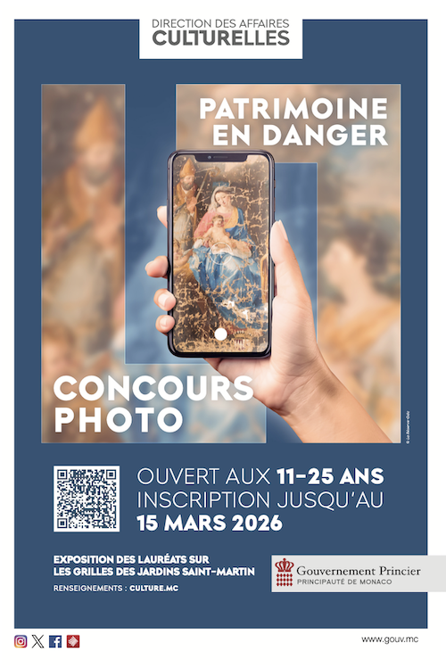 Inscriptions sur culture.mc jusqu’au 15 mars 2026 à 23h59. Contact : infodac@gouv.mc.
