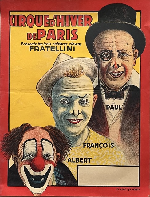 Dès lors, les clowns comprennent l’intérêt de s’associer avec l’Auguste, qui endosse le rôle de victime tandis qu’eux deviennent le clown blanc scintillant qui commande et ordonne. Au même titre que le clown suisse Grock, Albert Fratellini amplifiera cette silhouette au début du XXe siècle en ajoutant un nez rouge pour structurer son visage aux traits démesurés, créant le masque universel que nous connaissons aujourd’hui.