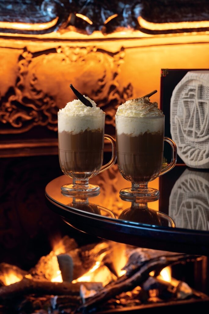 Dans le Lobby Bar de l’Hôtel Métropole Monte-Carlo, les flammes dansent doucement dans la cheminée. Les fauteuils de velours invitent à la confidence, tandis qu’un parfum de cacao flotte dans l’air feutré. Sur les tables basses, des tasses de chocolat chaud côtoient des créations pâtissières aux reflets mordorés. Dehors, l’hiver monégasque s’installe ; à l’intérieur, le temps suspend son cours.