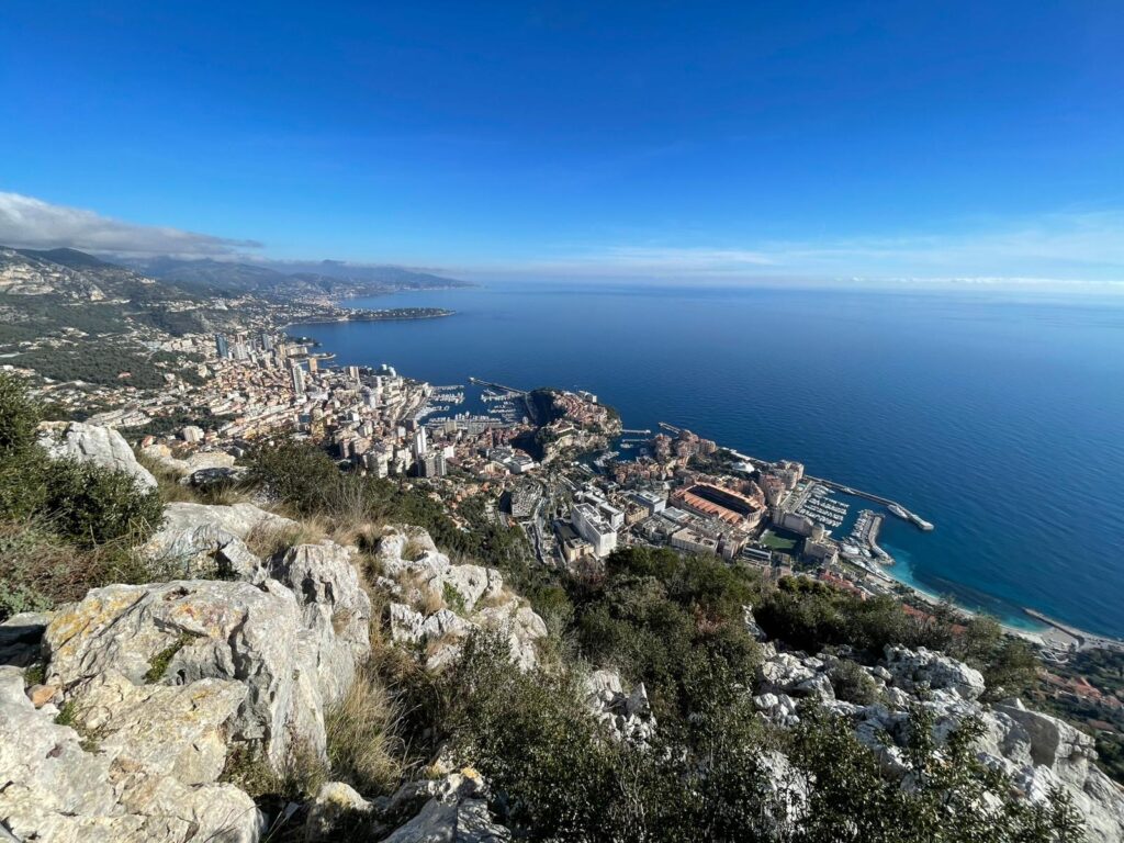 Impossible de trouver plus proche. Ce promontoire calcaire culminant à 550 mètres surplombe directement la Principauté et offre un panorama spectaculaire de la Principauté et de la Côte d’Azur. Le sentier balisé, d’environ 9 kilomètres en boucle depuis Beausoleil (niveau difficile) ou de 6 kilomètres depuis le village de Cap d’Ail, serpente dans la végétation méditerranéenne.