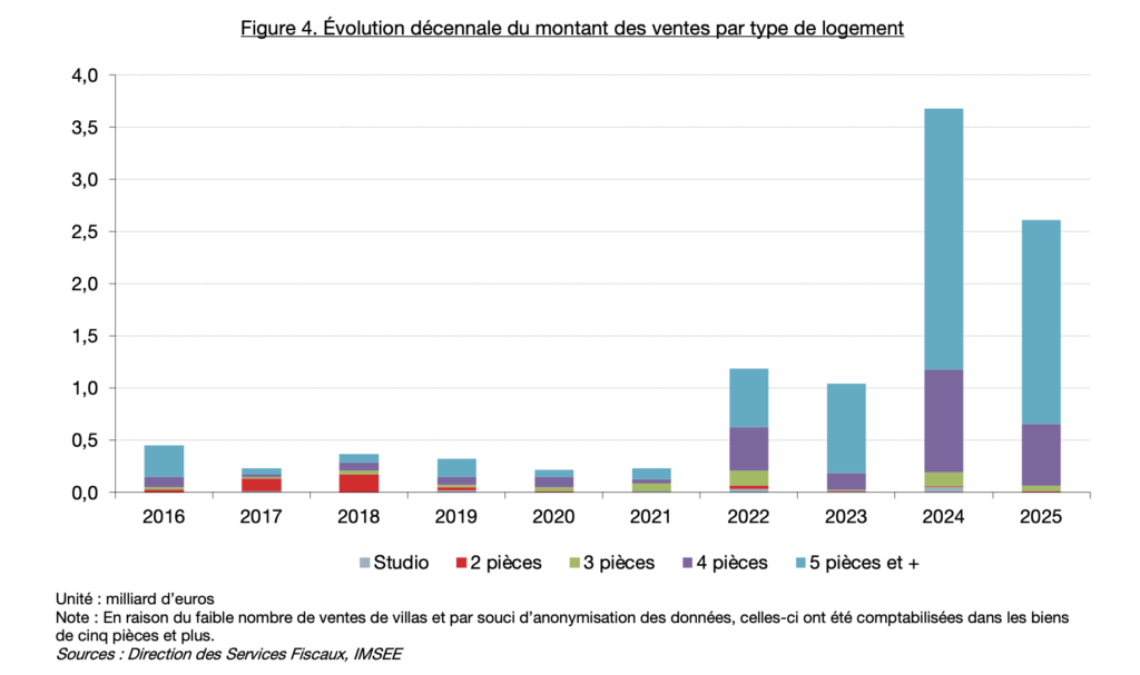 Derrière cette stabilité apparente se jouent en réalité deux dynamiques opposées : un recul marqué des premières ventes de biens neufs, compensé presque à l’euro près par une explosion du marché secondaire. Pour Céline Caron-Dagioni, Conseiller de Gouvernement-ministre de l’équipement, de l’environnement et de l’urbanisme, cet observatoire est précieux : « il nous permet d’objectiver les dynamismes du marché sur l’année écoulée, et on sait ô combien c’est un marché qui attire l’attention. »