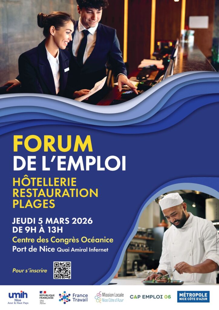 Premier employeur des Alpes-Maritimes, le secteur de l’hôtellerie-restauration fait face chaque année à une demande de main-d’œuvre considérable à l’approche de l’été. Pour y répondre, la Métropole Nice Côte d’Azur, France Travail et la Fédération des métiers de l’hôtellerie-restauration (UMIH) organisent le jeudi 5 mars 2026 la cinquième édition du forum de l’emploi hôtellerie restauration. Cette année, ce sont près de 1 200 postes qui sont à pourvoir, proposés par plus d’une centaine d’établissements de la région.
