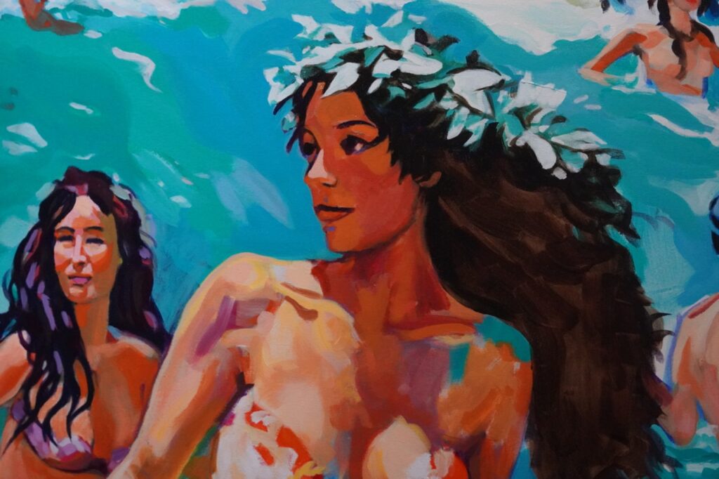 Dans ce parcours, le peintre américain Walter Robinson incarne une touche d’ironie grâce à son oeuvre Hawaï représentant des baigneuses dans le tumulte des vagues. « Une opposition franche avec le calme et le recueillement des eaux représentées par Poussin, explique Guillaume de Sardes. Tout au long de sa carrière, cet artiste a travaillé sur l’iconographie mythique des États-Unis en jouant avec le kitsch — couvertures de romans policiers, imagerie érotisante des années 1950-60. »