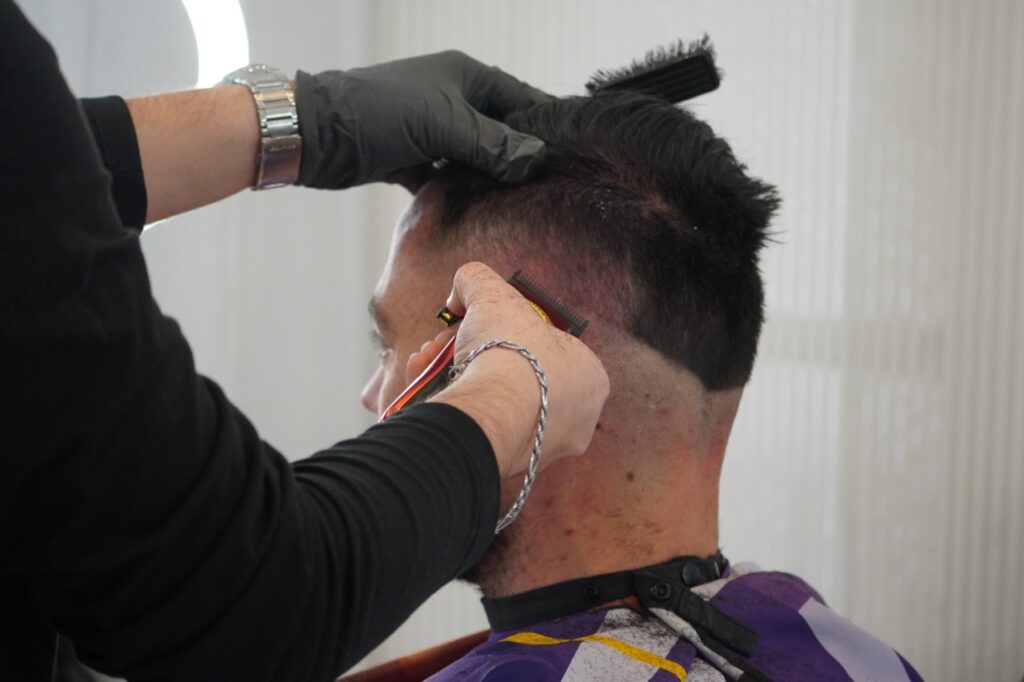 C’est en 2018, sans formation ni diplôme, que David commence à manier la tondeuse et les ciseaux. Quelques amis se prêtent au jeu, avec des résultats qu’il qualifie lui-même, dans un sourire, de « gentil charcutage ». Mais l’envie est là, tenace. Il achète un premier appareil bon marché, enchaîne les coupes sur son entourage, et confirme une intuition : ce métier pourrait être le sien. En 2019, il intègre un salon de coiffure à Beausoleil, où il se spécialise dans la coupe masculine et le travail de la barbe.