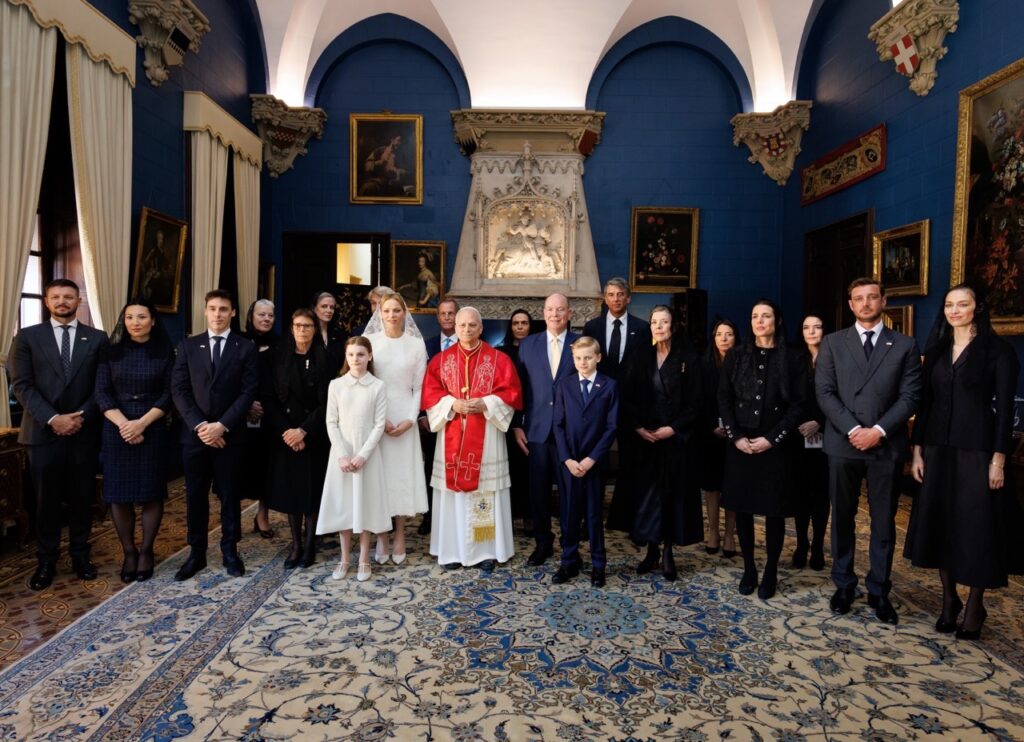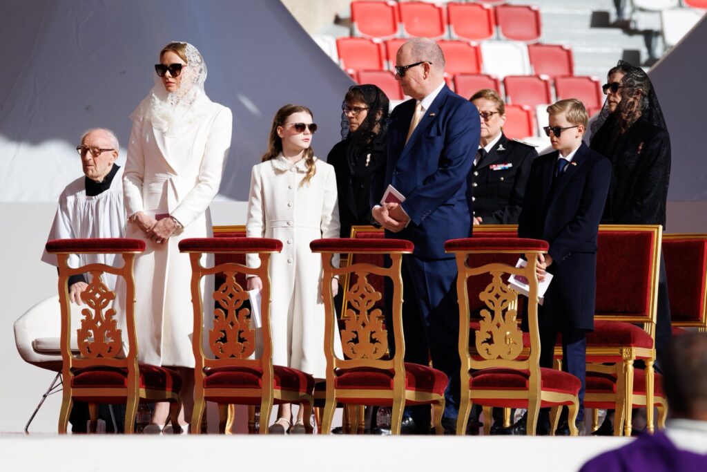 À leurs côtés se trouvaient Charlotte Casiraghi, Pierre Casiraghi et son épouse Beatrice Borromeo, ainsi que Louis Ducruet et son épouse Marie. Mélanie-Antoinette de Massy, cousine du Prince Albert II, et Gareth Wittstock, frère de la Princesse Charlène, complétaient ce tableau familial. À la cathédrale de Monaco, l’ensemble de la famille a de nouveau entouré le Pape pour l’office de Sexte.