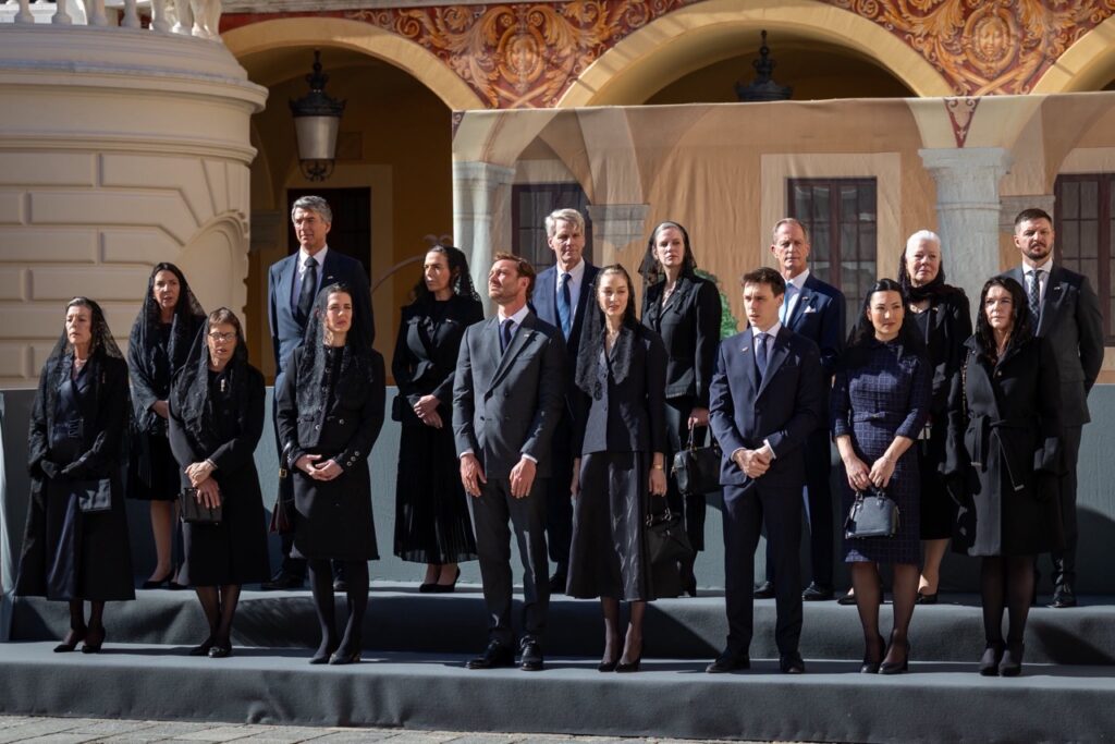 Au-delà du Couple Princier et de ses enfants, de nombreux membres de la famille s’étaient mobilisé. Sur une estrade installée dans la cour d’honneur, les Princesses Caroline et Stéphanie avaient pris place au premier rang, vêtues de noir et coiffées de mantilles, conformément au protocole.