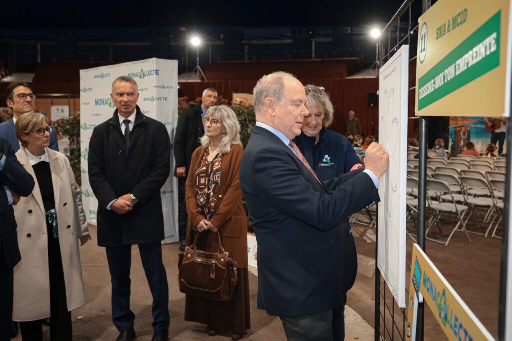 Venu inaugurer cette nouvelle édition, le Prince Albert II était accompagné du Ministre d’État, Christophe Mirmand, et de la Conseillère-Ministre, Céline Caron-Dagioni. Pierre Bardy, directeur général de la Société Monégasque d’Assainissement (SMA), à l’initiative de l’événement, guidait la visite du Souverain d’un espace à l’autre. Sur celui de Fight Aids Monaco, le Prince s’est même prêté au jeu en griffonnant « Je réfléchis avant de jeter. Je pense à recycler » sur un petit drapeau, avant de le planter sur une boule de papier.
