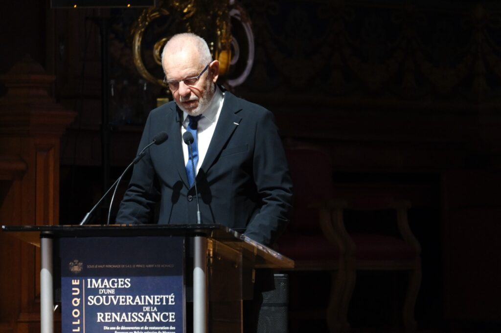 En guise d’introduction, le Souverain a souligné l’importance de ce bilan d’étape : « Ces peintures ont beaucoup à vous dire. Les choix iconographiques de mes prédécesseurs, les Seigneurs monégasques du XVIᵉ siècle, ne sont pas innocents. » Il a également précisé que « les dernières phases de restauration devraient être achevées en 2028 ».