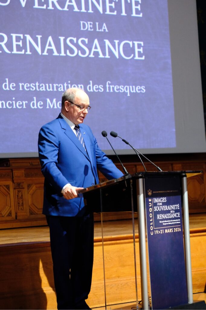 Le Prince Albert II et la Princesse Caroline ont ouvert ce jeudi 19 mars un colloque scientifique de trois jours consacré aux fresques Renaissance du Palais Princier, au Musée océanographique de Monaco. Intitulé « Images d’une souveraineté de la Renaissance », ce rendez-vous pluridisciplinaire présidé par Dominique Vingtain, conservatrice générale du patrimoine et Directrice du Centre interdisciplinaire de conservation et de restauration du patrimoine (CICRP), rassemble chercheurs, historiens de l’art, conservateurs venus d’Italie, de France et d’Europe.