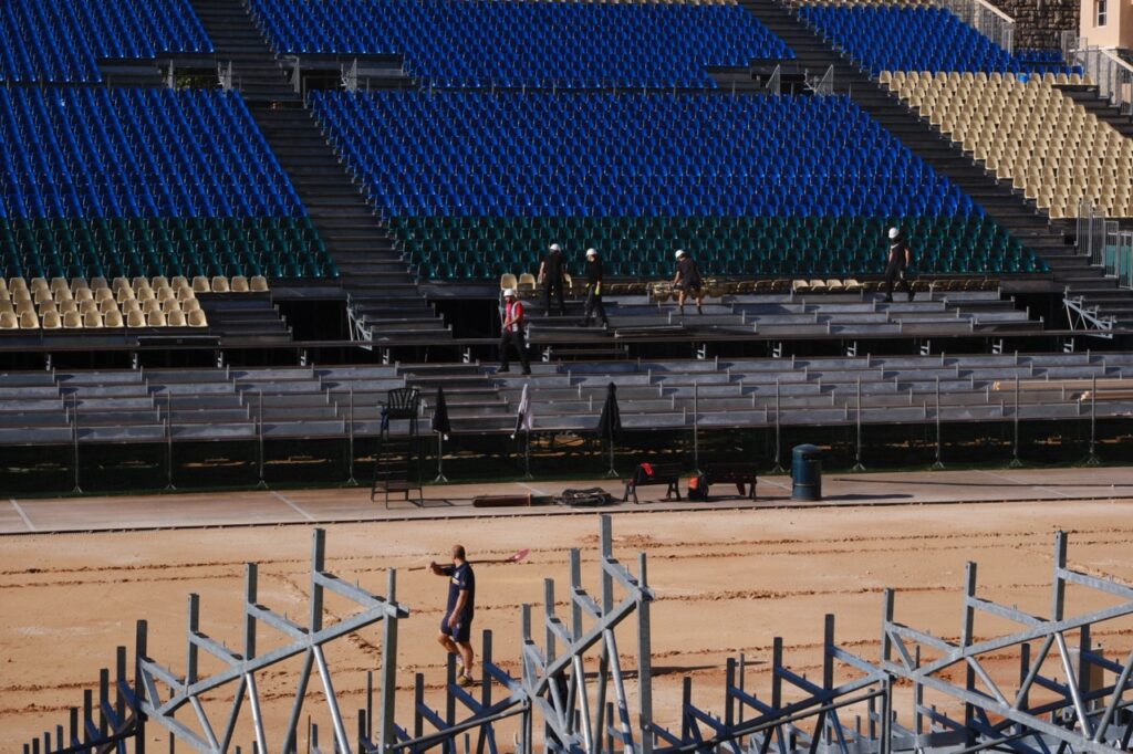 À quelques mètres, Gilles Daon et Geoffrey Rigaud coordonnent le montage des tribunes avec une équipe de 32 intérimaires. Parmi les nouveautés de cette édition 2026, des garde-corps vitrés ont été installés sur le court Rainier III pour améliorer la visibilité des spectateurs. Dans quelques jours, du 4 au 12 avril les premiers coups de raquette résonneront sur cette surface que Michel aura façonnée.