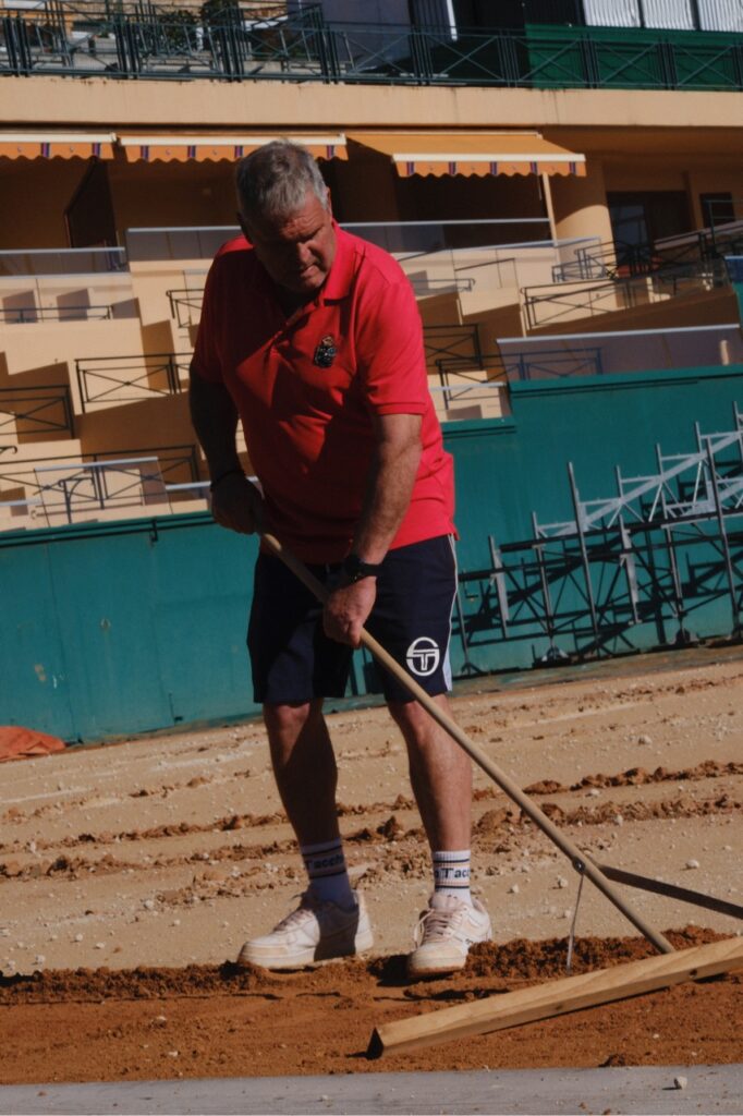 Lundi matin. Sous un soleil de plomb en plein mois de mars, le court Rainier III du Monte-Carlo Country Club n’a presque plus rien d’un terrain de tennis. Les lignes ont disparu, la surface est retournée, des hommes s’affairent dans le vacarme d’un chantier avec des râteaux et des pelles. Au milieu d’eux, Michel Garcia observe, corrige, indique du doigt un creux invisible à quiconque n’a pas ses yeux. Employé à l’année par le club, ce spécialiste de la terre battue, qui intervient aussi depuis 30 ans sur les courts de Roland-Garros, supervise cette métamorphose annuelle avec la rigueur d’un artisan. Dans moins de trois semaines, le Rolex Monte-Carlo Masters accueillera les premiers échanges des stars du tennis mondial. Tout doit être prêt.