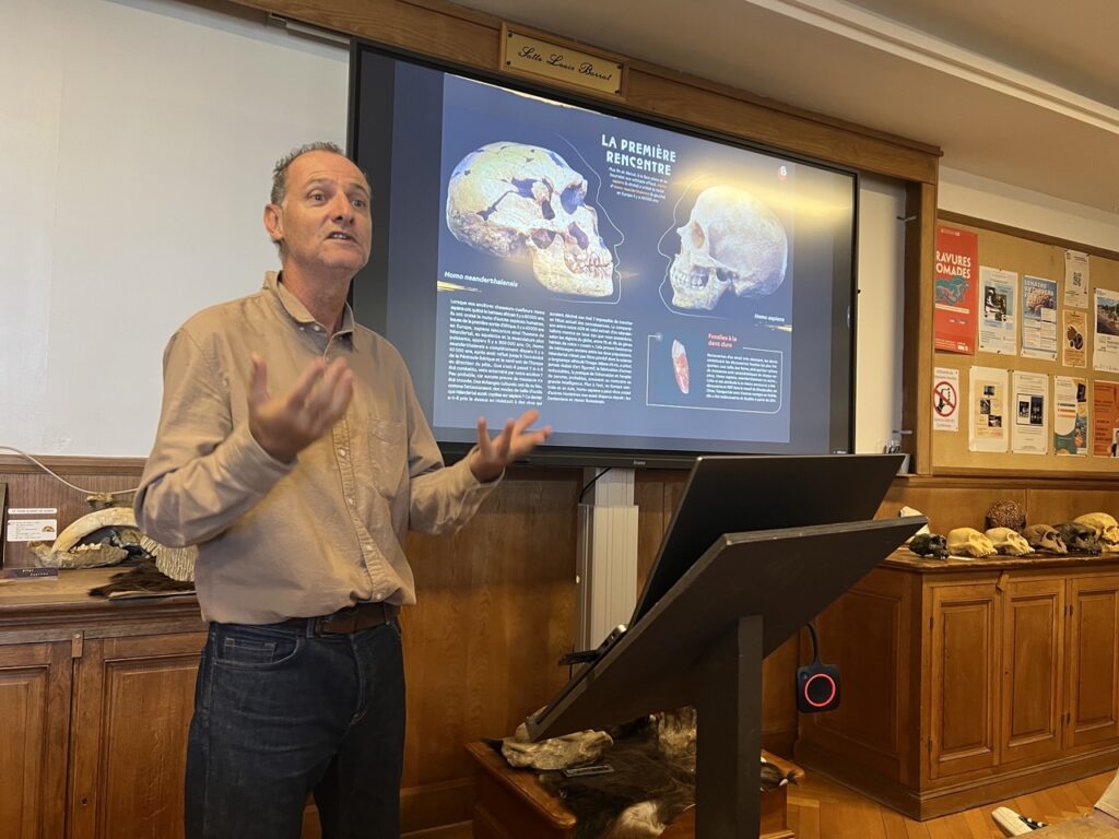 L’un des partis pris les plus saisissants de l’exposition est de faire imaginer au visiteur une planète peuplée de plusieurs espèces humaines simultanées. Pedro Lima rappelle que pendant plusieurs dizaines de milliers d’années, trois, quatre ou cinq espèces d’hominines ont cohabité, et que les sites archéologiques attestent de leurs présences contemporaines sur les mêmes territoires, sans qu’on sache toujours ce qui s’est joué lors de ces rencontres. L’exposition se referme sur la révolution néolithique, puis sur une question ouverte : où va Sapiens ? « L’espère a frôlé l’extinction il y a 20 000 ans, lors du Dernier Maximum glaciaire, lorsque la population mondiale ne dépassait pas, selon les estimations, 100 000 individus en Eurasie », raconte Pedro Lima, comparant cette population au 13e arrondissement de Marseille, ville dont il est originaire.