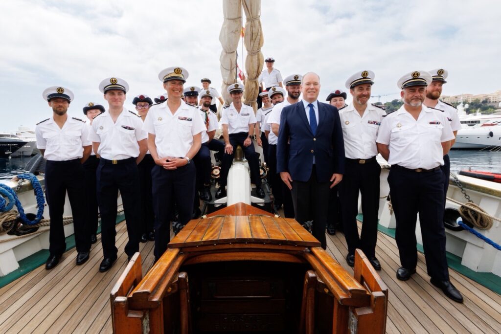 Barre en main, le Souverain a posé aux côtés de l’équipage de la goélette-école L’Étoile, amarrée au Yacht Club de Monaco, à l’occasion du 400e anniversaire de la Marine nationale française.