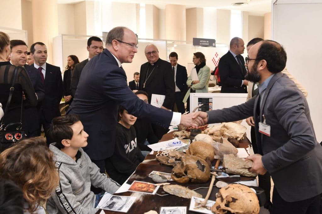 During the 4th edition of the Agora des métiers, held on Tuesday, January 22, 2019, at the Auditorium Rainier III, Prince Sovereign Albert II paid a visit to the various stands. He was accompanied by Serge Telle, Minister Mr Patrice Cellario, Government Counselor – Minister of the Interior, Mr Didier Gamerdinger, Government Counselor – Minister of Social Affairs and Health, Msgr Barsi, Archbishop of Monaco, Mrs Isabelle Bonnal, Director of National Education, Youth and Sports, Mr. Stéphane Valeri, President of the National Council, as well as many personalities of the Principality.