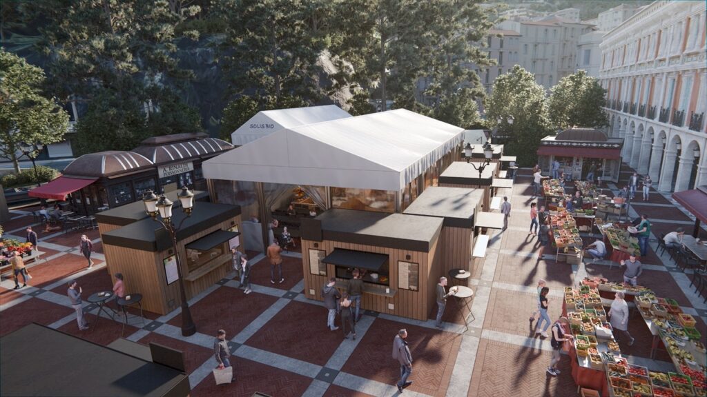 The market gardeners’ opening hours will be cut back to midday, freeing up space for more tables at lunchtime. The lifts from rue Terrazzani and access to the car park will remain operational throughout the works.