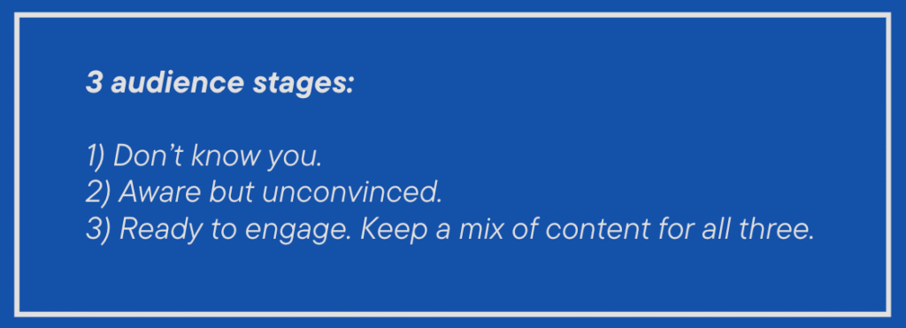 A strong LinkedIn strategy speaks to three levels of audience awareness: