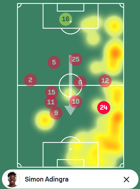 From the first whistle, Adingra was lively from his left wing post, on a night where he grasped his opportunity to start on his home debut in fine style. Consistently causing problems for his direct opponent, Fabien Centonze, and the Nantes defence in general, Adingra’s dribbling wizardry, clinical finishing and clever movement were a constant menace.