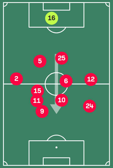 Then, in terms of his movement, his usual high and wide position stretched the Nantes backline both horizontally and vertically and pinned his full-back, which notably opened lanes for runners inside.