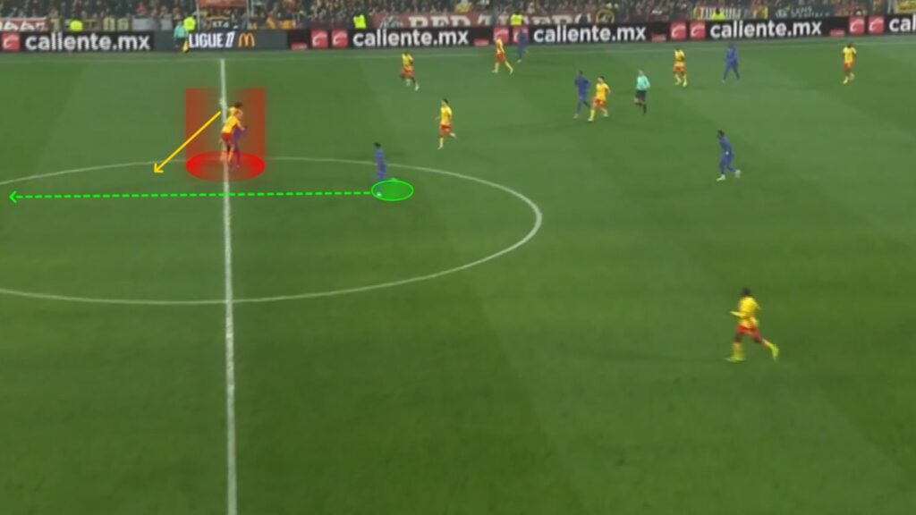 He also carried out his defensive duties successfully. His pressing was sharp and astute, using his cover shadow to cut off passing lanes, steering Lens toward the touchline and helping his side regain possession in advanced areas to mount fresh attacks.