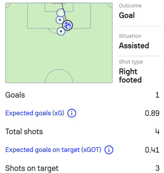 Instinctively launching his trademark dangerous runs into the box and beyond the back line, he repeatedly found himself in the right place at the right time. Whether delaying his movement, bursting into space at either post or cleverly slipping away from his trackers, his timing was central to his effectiveness, even if he wasn’t always picked out, with his six touches inside the box and four shots serving as a testament to his class in this regard.