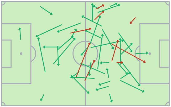 To focus further on his work with the ball at his feet, his tidy passing over short, medium and longer distances was on point, ensuring he switched the angle of attacks and recycled possession crisply. Also choosing when to play the more risky passes, such as intricate layoffs and line-breaking passes, he did so comfortably.