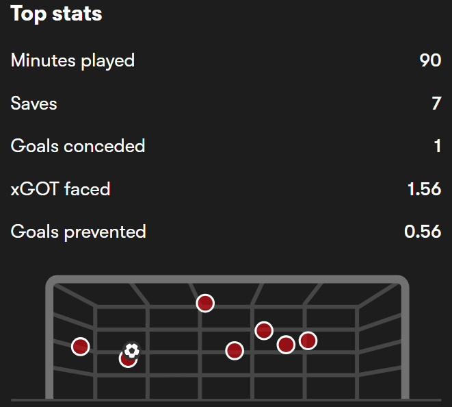 By the numbers, his seven saves, 0.56 goals prevented and seven ball recoveries further underlined what a commanding body of work he put in.