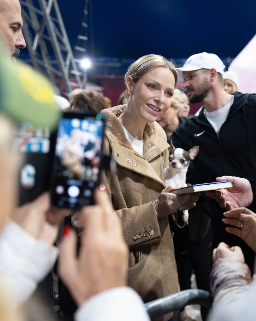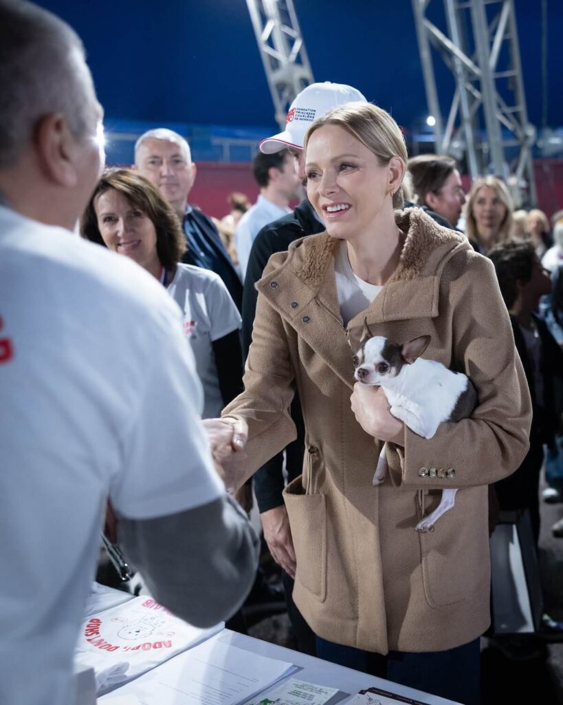In jeans e parka cammello MaxMara, la Principessa ha scelto la sobrietà, confondendosi tra la folla di proprietari di cani venuti a testimoniare il loro sostegno alla causa. Accompagnata dal fratello Gareth Wittstock, segretario generale della sua fondazione, ha percorso il chilometro simbolico attorno al tendone di Fontvieille: un gesto che ha incarnato quella vicinanza e semplicità che da sempre caratterizzano il suo impegno in difesa degli animali.