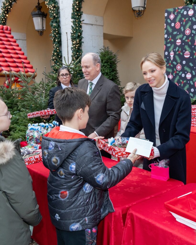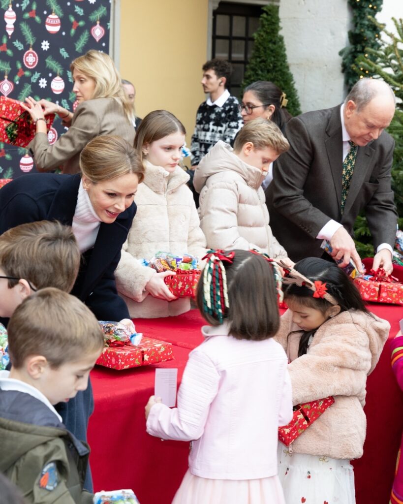 Il Principe Alberto II e la Principessa Charlène distribuiscono i regali di Natale insieme ai gemelli Jacques e Gabriella