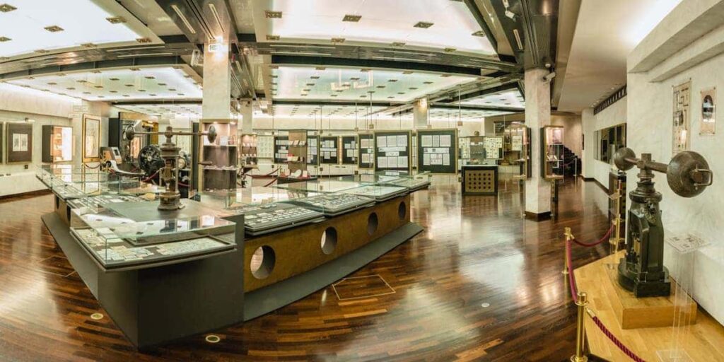 L’une des spécificités du musée est qu’il n’expose pas que des timbres et des monnaies, mais aussi des machines et des outils de fabrication. De quoi permettre aux visiteurs de comprendre le processus de fabrication au XIXe siècle. D’ailleurs, les premiers timbres monégasques remontent à 1885 par le Prince Charles III. Les premières monnaies monégasques quant à elles, ont été créées en janvier 1640 par le Prince Honoré II. Puis, en octobre 1643, Louis XIV accorda à Honoré II, le bénéfice de la libre circulation en France de ses monnaies d’or et d’argent, sous réserve, qu’elles soient alignées sur les monnaies françaises correspondantes. Cette règle a été reprise en 1865 pour toutes les monnaies monégasques jusqu’à la création de l’Euro le 1er janvier 2001.